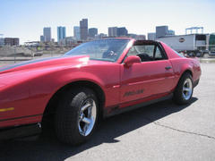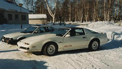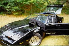 Pro/am firebird 1987, The cars had large "PRO/AM" lettering on the doors. The stock hood recieved a non functional Cown induction scoop.